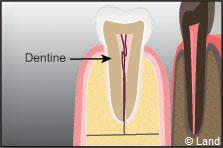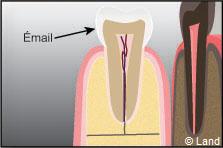 La dentine est composée d’une trame moins minéralisée, située sous l’émail.